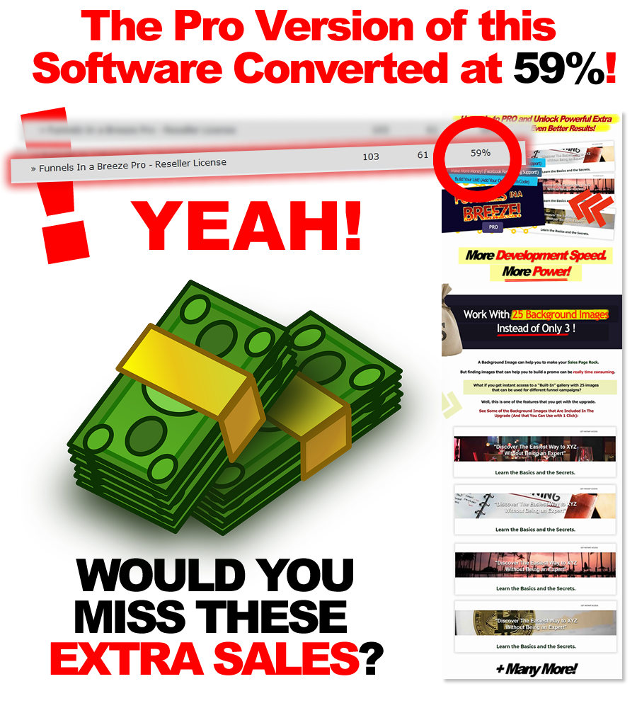 Each one of the Software has a "Pro" version that you can use as an Upsell for More Money. And some of these apps have AWESOME CONVERSIONS (+60%), so this will be REALLY Cool to Build Complete Funnels That Rock!